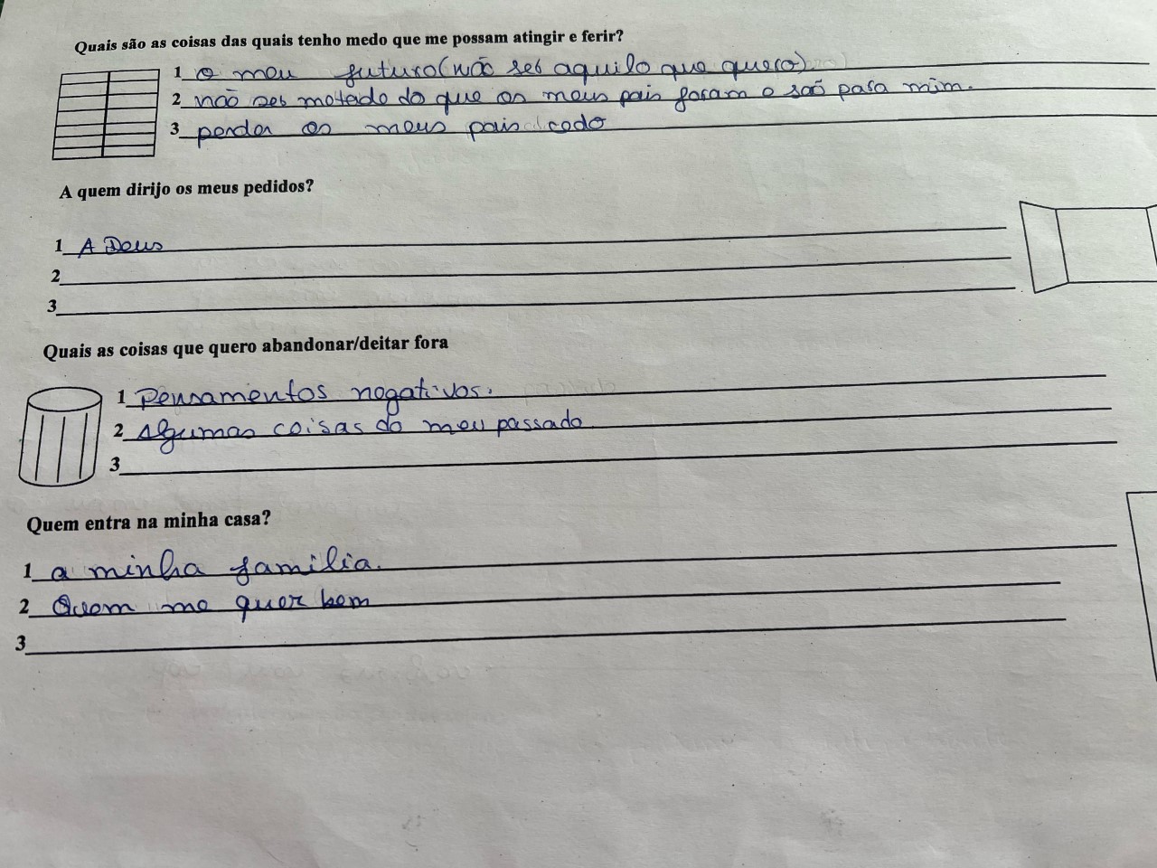 Atividade proposta pela professora, à cerca das relações interpessoais.